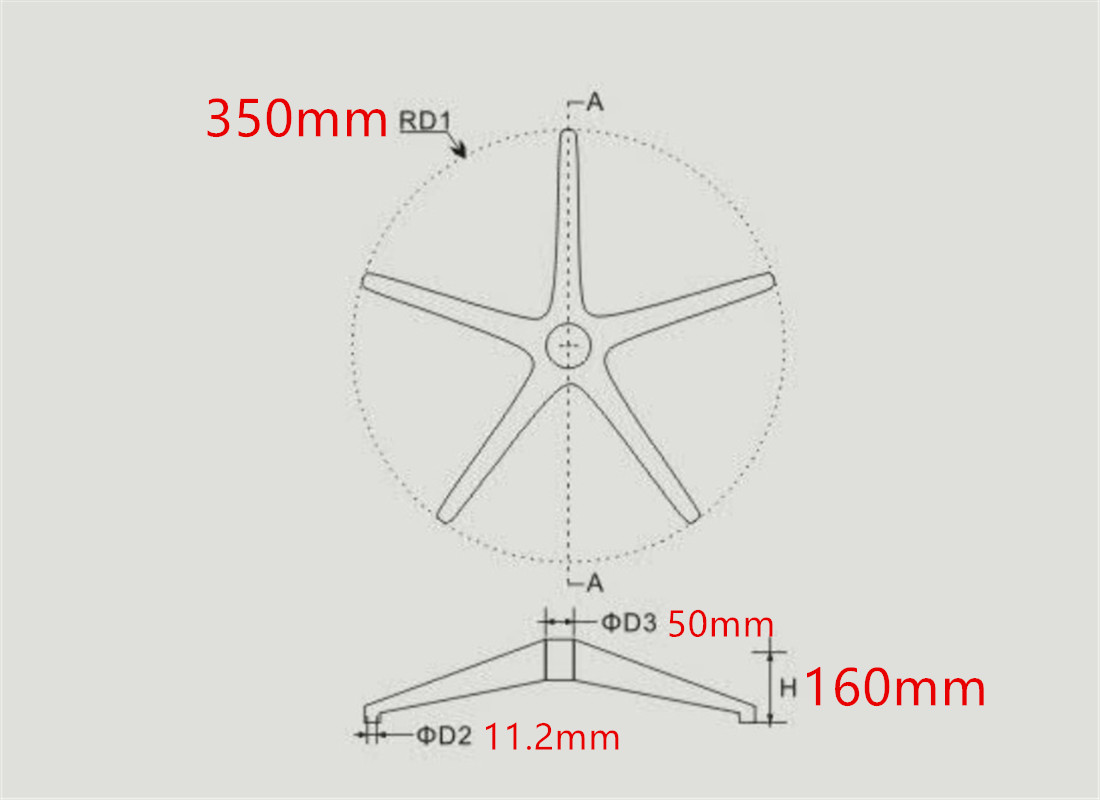 The customization for chair base is based on the customer’s appearance(5star chair base,4 legs base,3 leg base), surface treatment(Raw polished bases, finish polished bases, powder coat painted bases) , Colors (black,red, gray,blue, green, yellow etc.), Radius range from 200mm to 350mm. Base on your finish-chair and your special requirements,we will offer professional suggestions to improve mold more available.Once you approve the cost for injection mold and chair base unit price, we will produce some samples until you are satisfied.