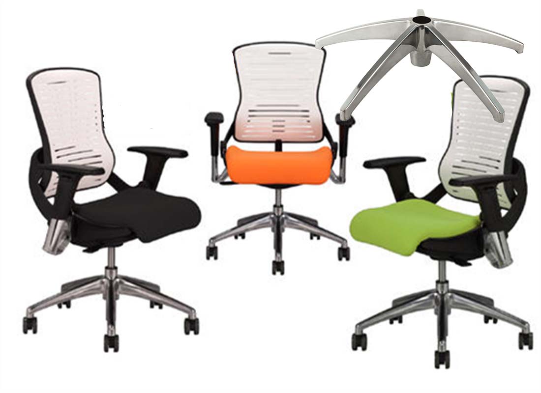 A: Aluminum alloy chair bases are anti-rust, stable in structure, and the best bearing capacity. Aluminum chair base parts have chromed surface treatment, polish and powder coating surface treatment, and painted surface treatment which can be used for outdoor furniture or high-end chairs. Iron metal chair bases can be made in various shapes with designs , and cheaper than aluminum alloy chair bases, two kinds of surface treatment are Chromed and powder coated. The disadvantage is easy to rust after a long time of use or in a wet environment. Nylon base also called plastic chair base is lightweight and cheap price than aluminum and Iron metal base. The bearing capacity is not as good as aluminum alloy and metal iron chair base parts, the lifetime is shorter than iron metal and aluminum alloy base parts