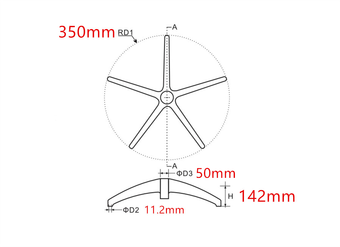The customization for chair base is based on the customer’s appearance(5star chair base,4 legs base,3 leg base), surface treatment(Raw polished bases, finish polished bases, powder coat painted bases) , Colors (black,red, gray,blue, green, yellow etc.), Radius range from 200mm to 350mm. Base on your finish-chair and your special requirements,we will offer professional suggestions to improve mold more available.Once you approve the cost for injection mold and chair base unit price, we will produce some samples until you are satisfied.
