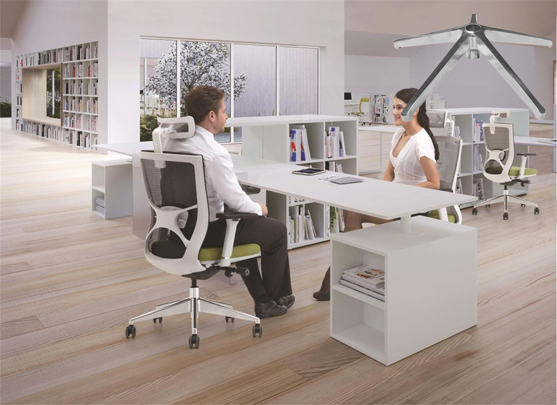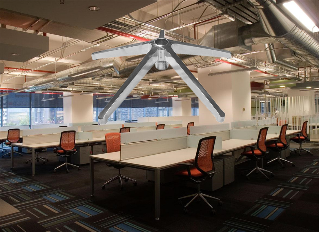 2.Chair bases divide 4 Leg bases and 5-star Bases. Available diameter for star chair bases ranges from 20" to 33".chair bases material are available in plastic, steel, and aluminum. Designed to accept a standard 50 mm diameter chair gas lift, chair Bases Accept friction ring stems used with most office chair wheels and glides. The below picture is the Office chair parts manufacturer workshop.
