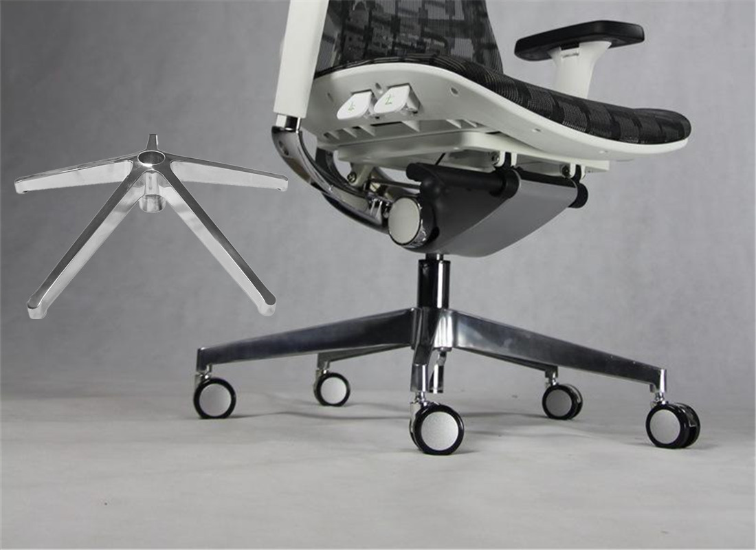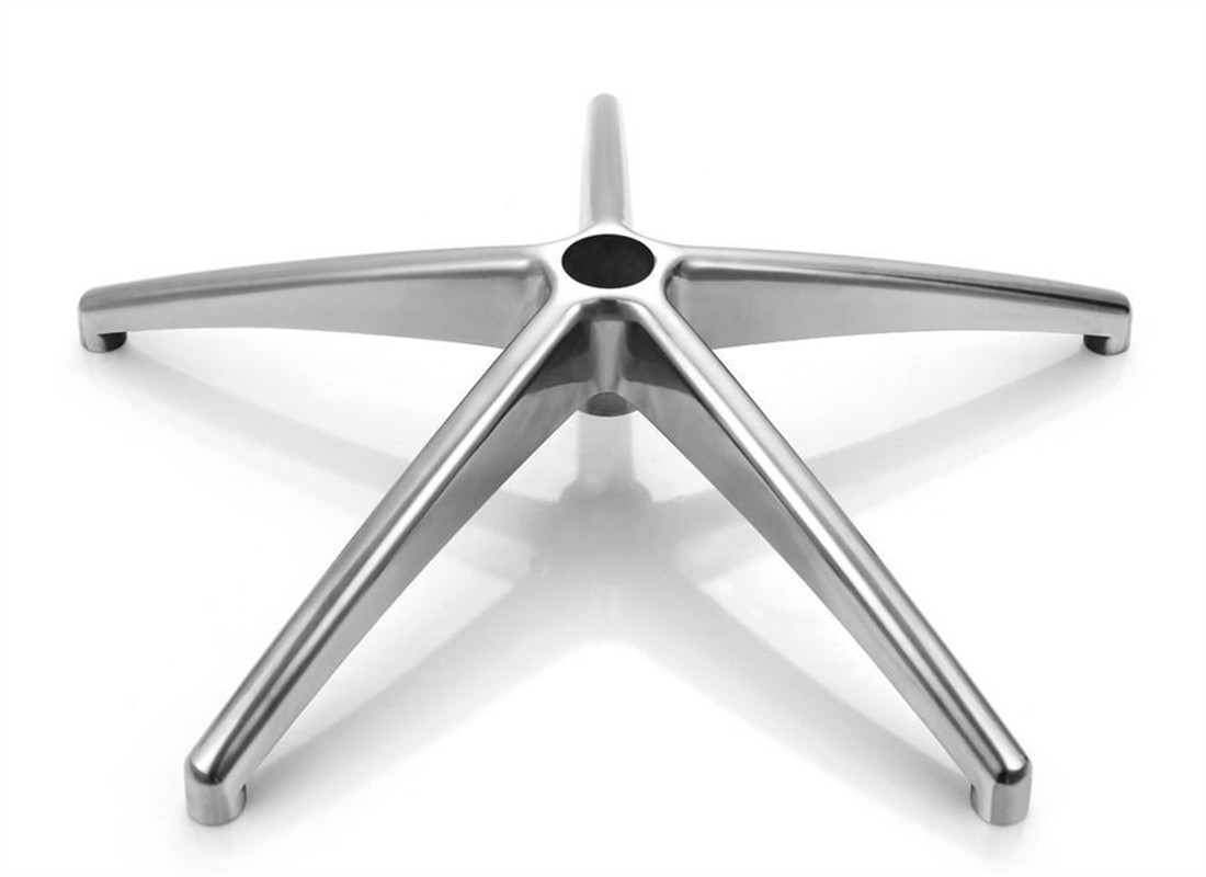 A: Aluminum alloy chair bases are anti-rust, stable in structure, and the best bearing capacity. Aluminum chair base parts have chromed surface treatment, polish and powder coating surface treatment, and painted surface treatment which can be used for outdoor furniture or high-end chairs. Iron metal chair bases can be made in various shapes with designs , and cheaper than aluminum alloy chair bases, two kinds of surface treatment are Chromed and powder coated. The disadvantage is easy to rust after a long time of use or in a wet environment. Nylon base also called plastic chair base is lightweight and cheap price than aluminum and Iron metal base. The bearing capacity is not as good as aluminum alloy and metal iron chair base parts, the lifetime is shorter than iron metal and aluminum alloy base parts