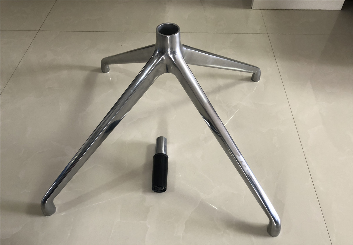 A: Aluminum alloy chair bases are anti-rust, stable in structure, and the best bearing capacity. Aluminum chair base parts have chromed surface treatment, polish and powder coating surface treatment, and painted surface treatment which can be used for outdoor furniture or high-end chairs. Iron metal chair bases can be made in various shapes with designs , and cheaper than aluminum alloy chair bases, two kinds of surface treatment are Chromed and powder coated. The disadvantage is easy to rust after a long time of use or in a wet environment. Nylon base also called plastic chair base is lightweight and cheap price than aluminum and Iron metal base. The bearing capacity is not as good as aluminum alloy and metal iron chair base parts, the lifetime is shorter than iron metal and aluminum alloy base parts