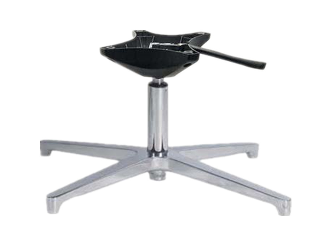 A: Aluminum alloy chair bases are anti-rust, stable in structure, and the best bearing capacity. Aluminum chair base parts have chromed surface treatment, polish and powder coating surface treatment, and painted surface treatment which can be used for outdoor furniture or high-end chairs. Iron metal chair bases can be made in various shapes with designs , and cheaper than aluminum alloy chair bases, two kinds of surface treatment are Chromed and powder coated. The disadvantage is easy to rust after a long time of use or in a wet environment. Nylon base also called plastic chair base is lightweight and cheap price than aluminum and Iron metal base. The bearing capacity is not as good as aluminum alloy and metal iron chair base parts, the lifetime is shorter than iron metal and aluminum alloy base parts