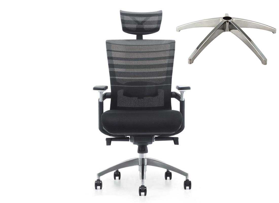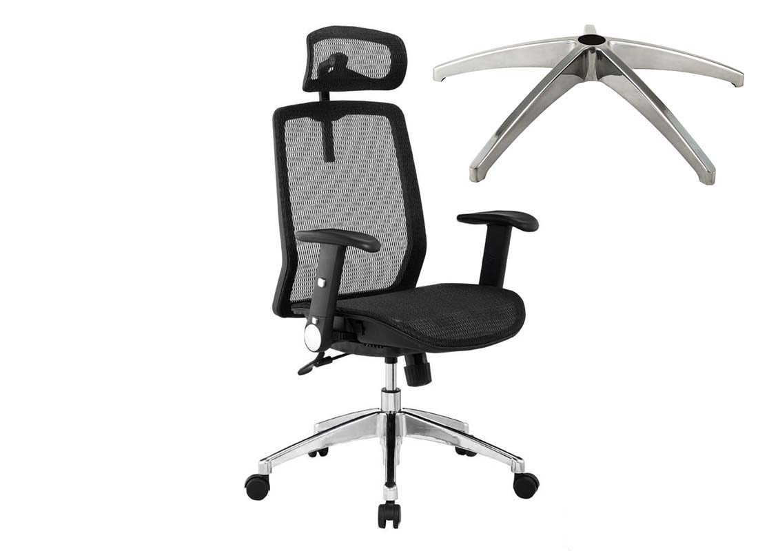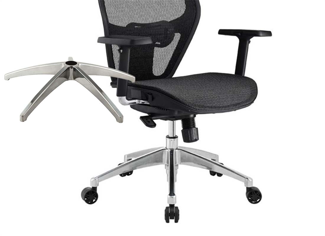 universal office chair base is te foundation of an office chair, which is made of aluminum alloys, this universal office chair base come in 5 legs that extend from a central column, providing stability in the office chair. office chair base had universal Standard Size which will fit almost every office chair on the market. It has the standard 2" (50mm) center hole for office chair gas cylinder and standard 7/16" x 7/8" (11mm x 22mm) sockets for friction ring stems office chair wheels and glides. Available diameter for office chair base ranges from 20" to 33"