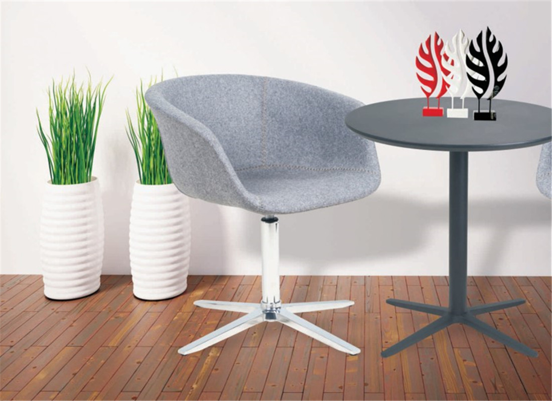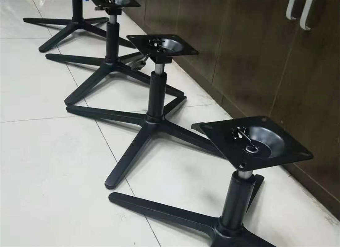 A: Aluminum alloy chair bases are anti-rust, stable in structure, and the best bearing capacity. Aluminum chair base parts have chromed surface treatment, polish and powder coating surface treatment, and painted surface treatment which can be used for outdoor furniture or high-end chairs. Iron metal chair bases can be made in various shapes with designs , and cheaper than aluminum alloy chair bases, two kinds of surface treatment are Chromed and powder coated. The disadvantage is easy to rust after a long time of use or in a wet environment. Nylon base also called plastic chair base is lightweight and cheap price than aluminum and Iron metal base. The bearing capacity is not as good as aluminum alloy and metal iron chair base parts, the lifetime is shorter than iron metal and aluminum alloy base parts