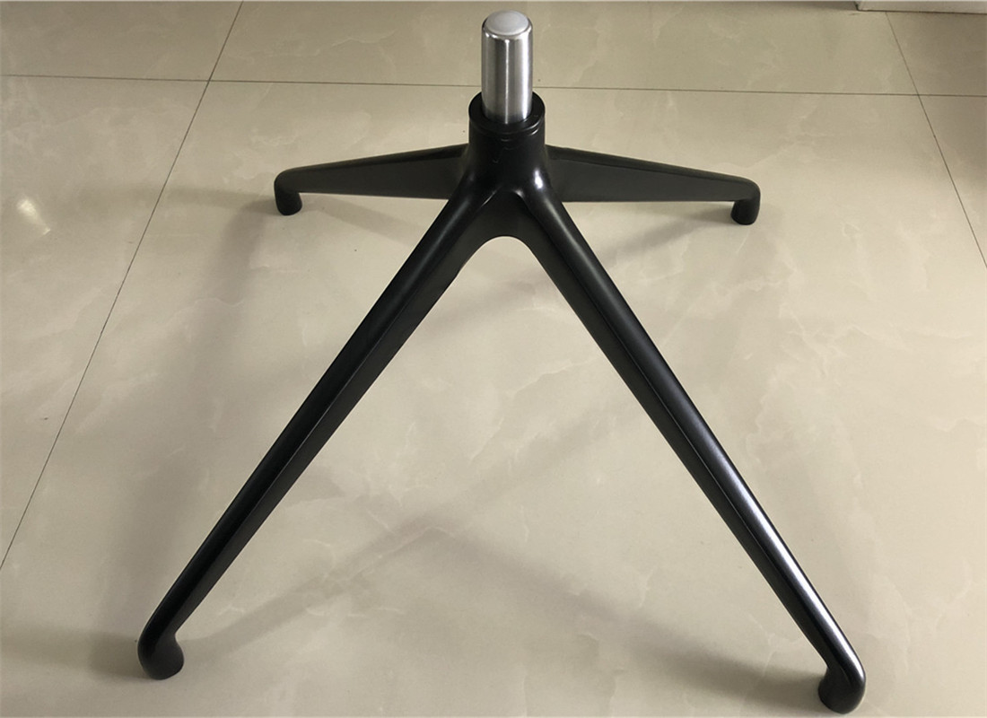 A: Aluminum alloy chair bases are anti-rust, stable in structure, and the best bearing capacity. Aluminum chair base parts have chromed surface treatment, polish and powder coating surface treatment, and painted surface treatment which can be used for outdoor furniture or high-end chairs. Iron metal chair bases can be made in various shapes with designs , and cheaper than aluminum alloy chair bases, two kinds of surface treatment are Chromed and powder coated. The disadvantage is easy to rust after a long time of use or in a wet environment. Nylon base also called plastic chair base is lightweight and cheap price than aluminum and Iron metal base. The bearing capacity is not as good as aluminum alloy and metal iron chair base parts, the lifetime is shorter than iron metal and aluminum alloy base parts