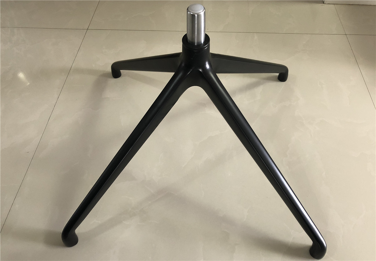 A: Aluminum alloy chair bases are anti-rust, stable in structure, and the best bearing capacity. Aluminum chair base parts have chromed surface treatment, polish and powder coating surface treatment, and painted surface treatment which can be used for outdoor furniture or high-end chairs. Iron metal chair bases can be made in various shapes with designs , and cheaper than aluminum alloy chair bases, two kinds of surface treatment are Chromed and powder coated. The disadvantage is easy to rust after a long time of use or in a wet environment. Nylon base also called plastic chair base is lightweight and cheap price than aluminum and Iron metal base. The bearing capacity is not as good as aluminum alloy and metal iron chair base parts, the lifetime is shorter than iron metal and aluminum alloy base parts