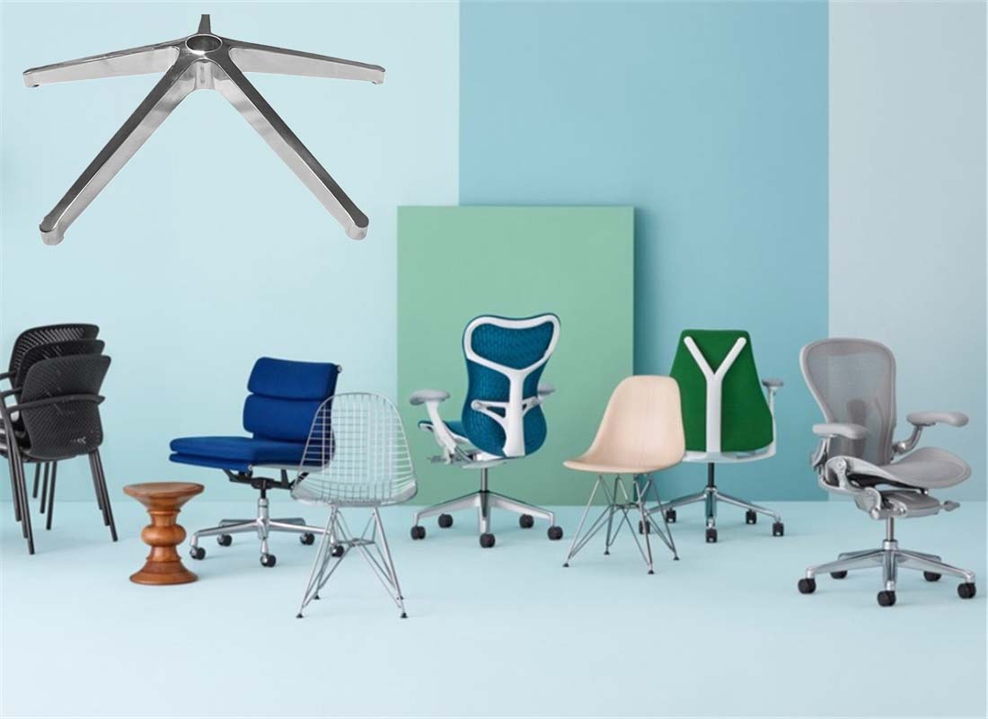 A: Aluminum alloy chair bases are anti-rust, stable in structure, and the best bearing capacity. Aluminum chair base parts have chromed surface treatment, polish and powder coating surface treatment, and painted surface treatment which can be used for outdoor furniture or high-end chairs. Iron metal chair bases can be made in various shapes with designs , and cheaper than aluminum alloy chair bases, two kinds of surface treatment are Chromed and powder coated. The disadvantage is easy to rust after a long time of use or in a wet environment. Nylon base also called plastic chair base is lightweight and cheap price than aluminum and Iron metal base. The bearing capacity is not as good as aluminum alloy and metal iron chair base parts, the lifetime is shorter than iron metal and aluminum alloy base parts