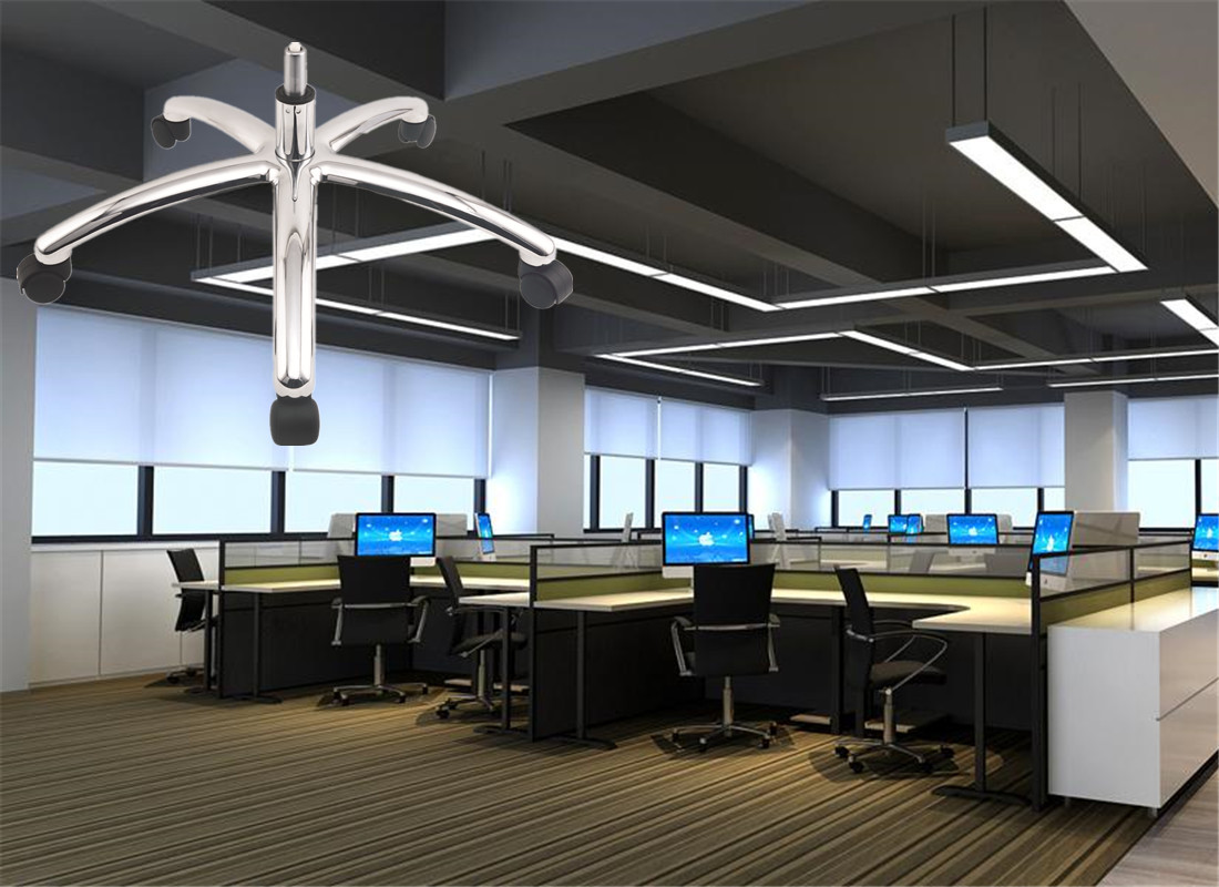 2.Chair bases divide 4 Leg bases and 5-star Bases. Available diameter for star chair bases ranges from 20" to 33".chair bases material are available in plastic, steel, and aluminum. Designed to accept a standard 50 mm diameter chair gas lift, chair Bases Accept friction ring stems used with most office chair wheels and glides. The below picture is the Office chair parts manufacturer workshop.