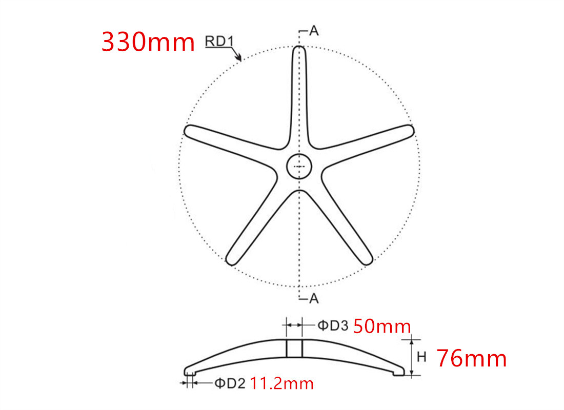 The customization for chair base is based on the customer’s appearance(5star chair base,4 legs base,3 leg base), surface treatment(Raw polished bases, finish polished bases, powder coat painted bases) , Colors (black,red, gray,blue, green, yellow etc.), Radius range from 200mm to 350mm. Base on your finish-chair and your special requirements,we will offer professional suggestions to improve mold more available.Once you approve the cost for injection mold and chair base unit price, we will produce some samples until you are satisfied.