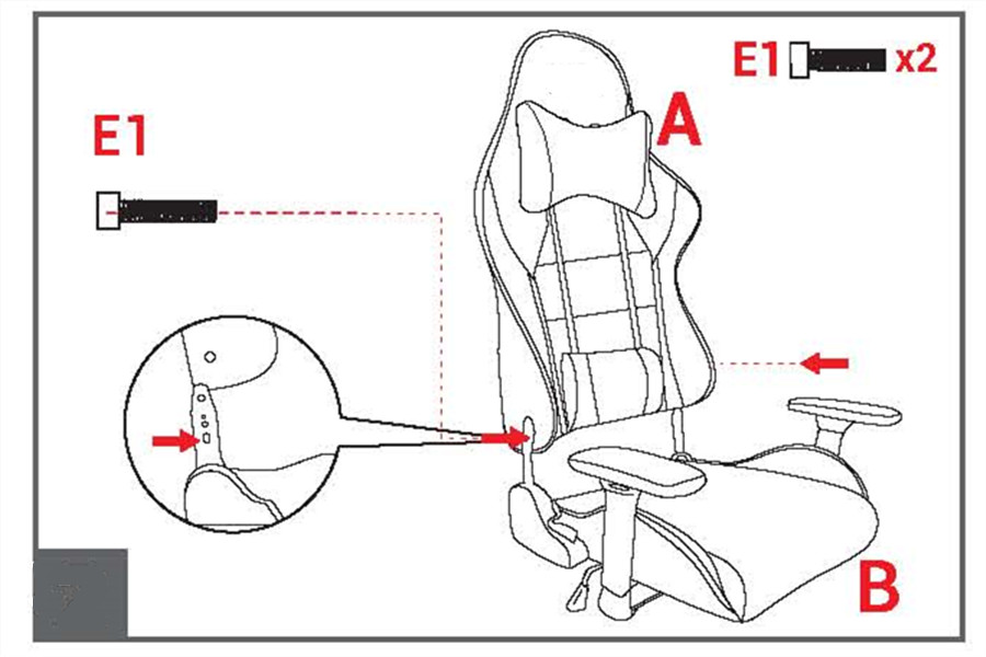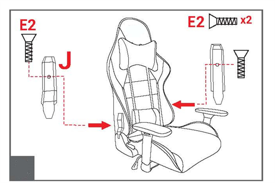 The same way to align the hole to hole between the seat with chair armrest, insert the right screws, and tighten with an Allen wrench.