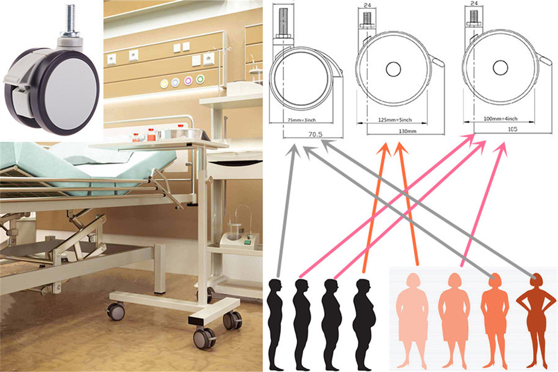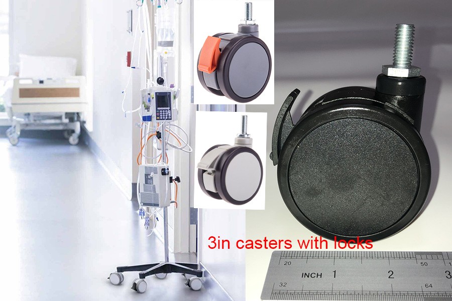 The regular size options for medical casters are 3 inch casters,4 inch casters,5 inch casters.