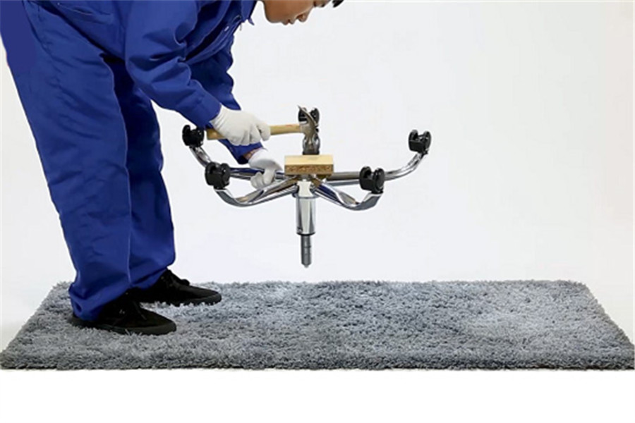 On the newspaper or drop-cloth, place the full set of base in an upside down position so that the chair’s star base center will be visible and easily accessed for disassemble,Use a rubber hammer to hit the bottom of gas piston,Remember to add a wooden board or an old book between gas piston if you don’t have rubber hammer.see picture as below: