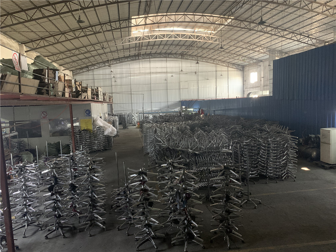 This picture and video are showing our production process for office chair parts Raw base in Stacking to keep office chair base no scratching.