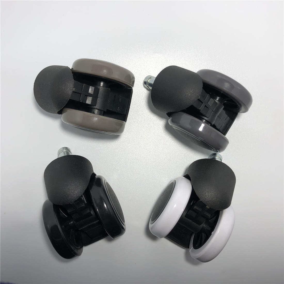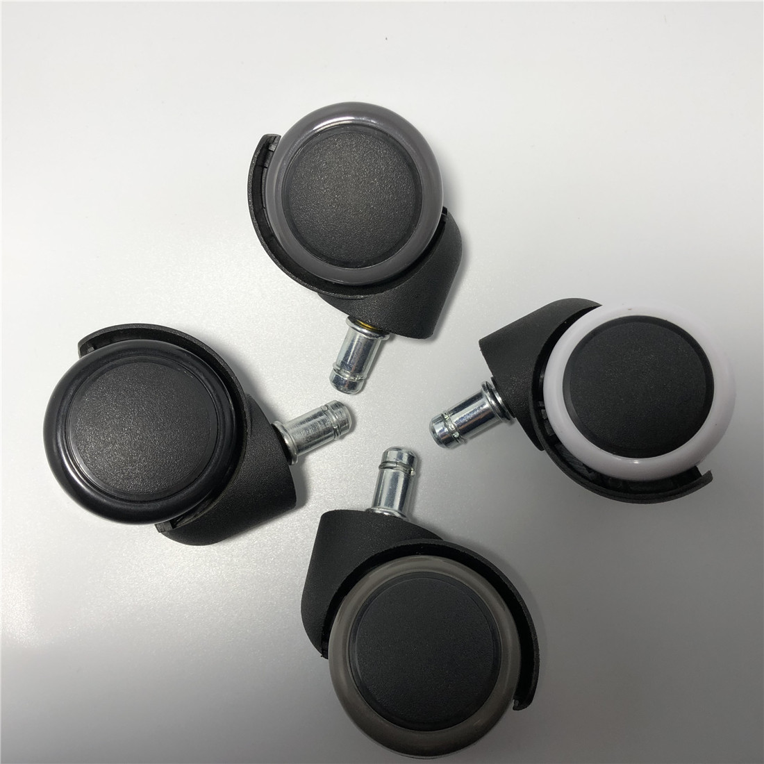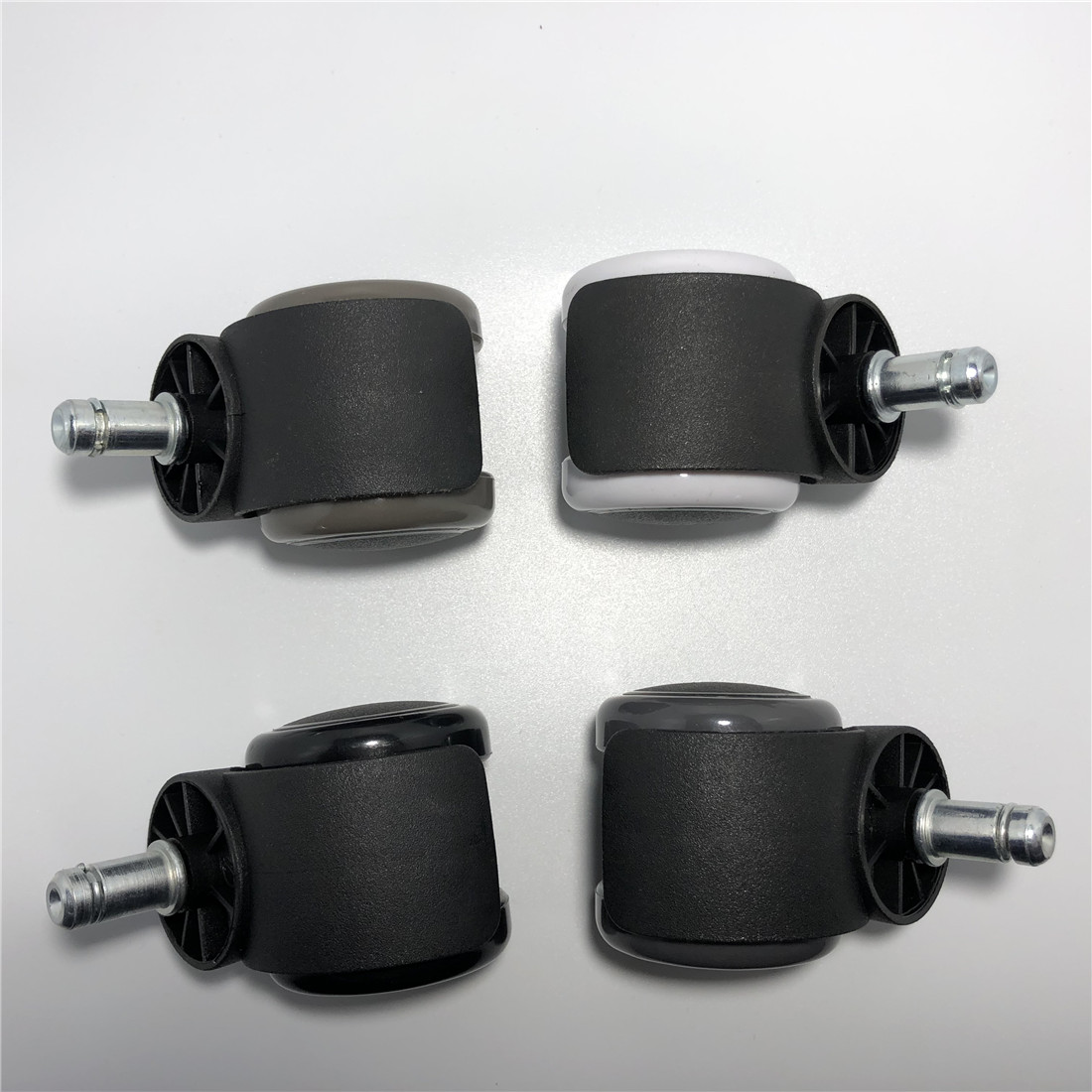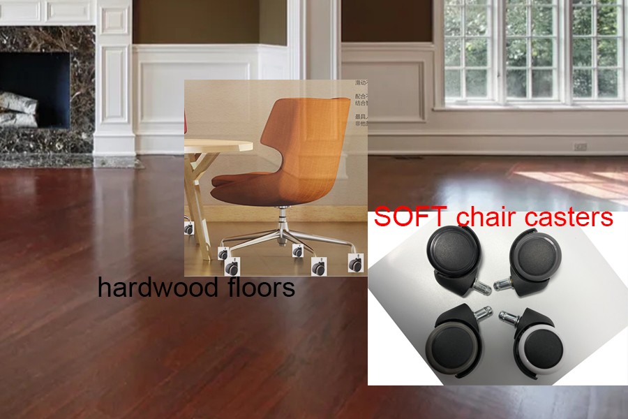 We recommend soft PU or PVC casters wheels to protect your floors.Most recommendations are for a soft rubber caster wheel on hardwood,but a soft polyurethane or PVC caster wheel can also be used on hardwood floors or tile floors. Most of the office chairs are designed as twin wheel nylon casters by manufacture,This type of caster specifically the plastic nylon wheel which can be used on carpeting but it will mark and scratch all wood floors. It happens because the nylon wheels don’t roll, they slide. When they slide, they mark or scratch the floor. Our selection of hard wood chair casters is the ideal solution for this problem. The soft rubber wheels on our chair casters for hardwood floors will not mark or scratch the floors.