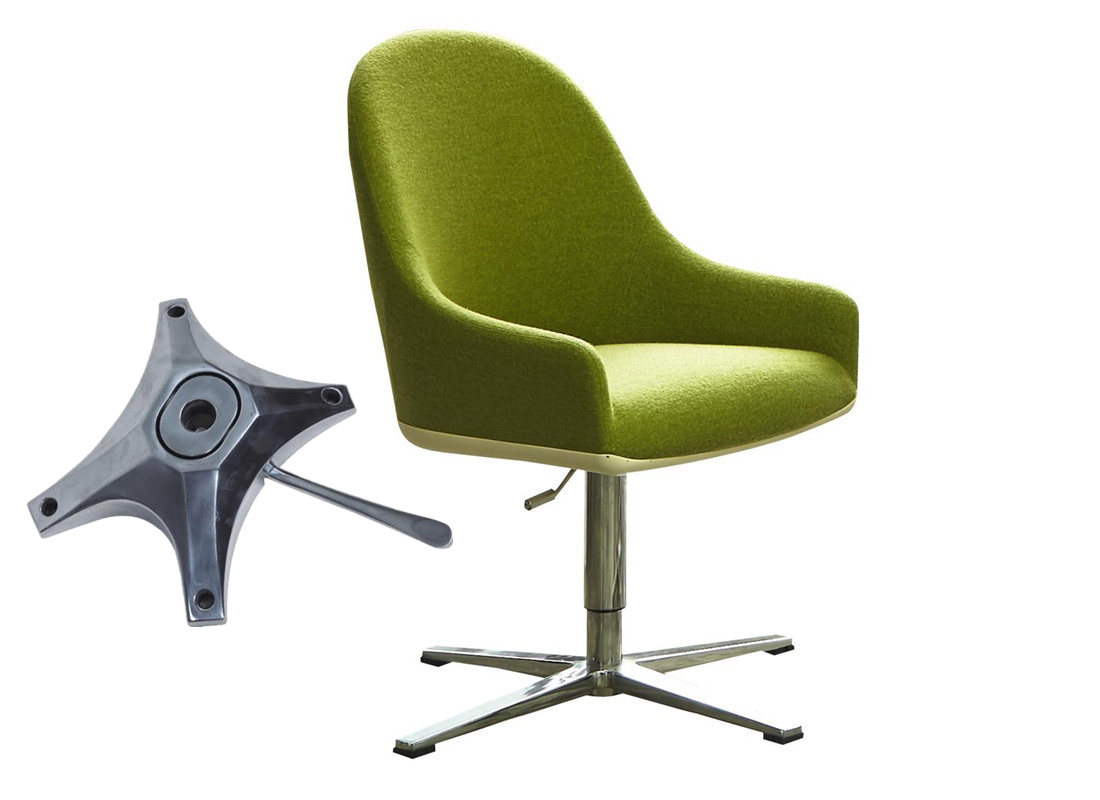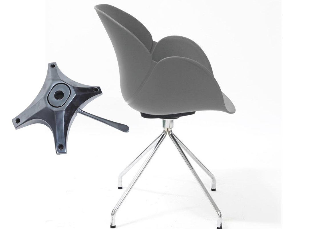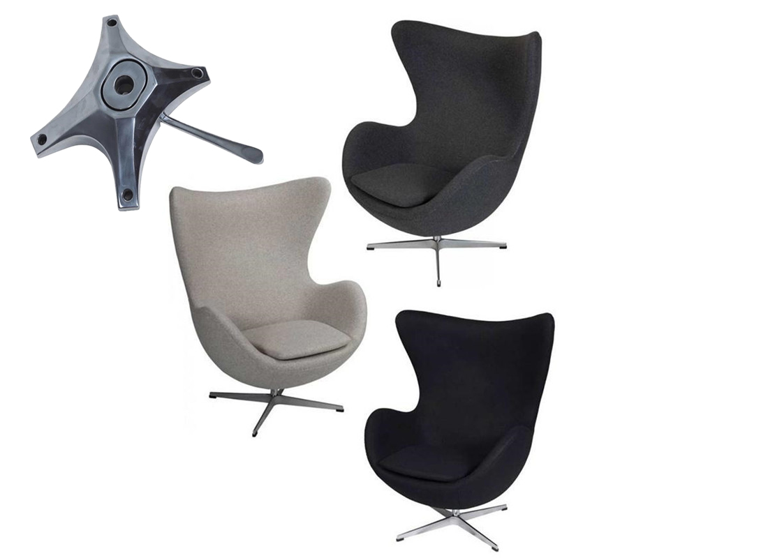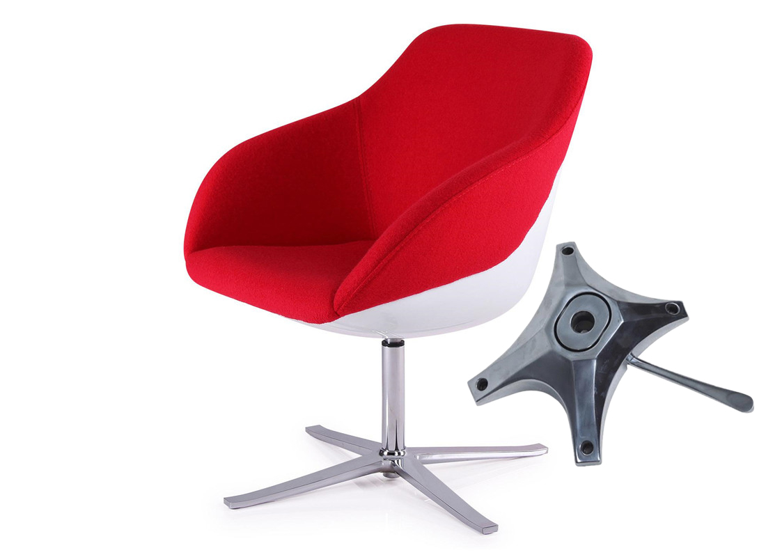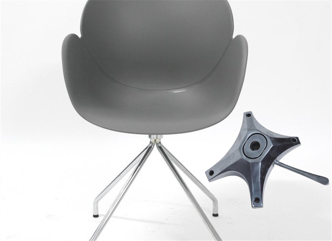 A: Aluminum alloy chair bases are anti-rust, stable in structure, and the best bearing capacity. Aluminum chair base parts have chromed surface treatment, polish and powder coating surface treatment, and painted surface treatment which can be used for outdoor furniture or high-end chairs. Iron metal chair bases can be made in various shapes with designs , and cheaper than aluminum alloy chair bases, two kinds of surface treatment are Chromed and powder coated. The disadvantage is easy to rust after a long time of use or in a wet environment. Nylon base also called plastic chair base is lightweight and cheap price than aluminum and Iron metal base. The bearing capacity is not as good as aluminum alloy and metal iron chair base parts, the lifetime is shorter than iron metal and aluminum alloy base parts