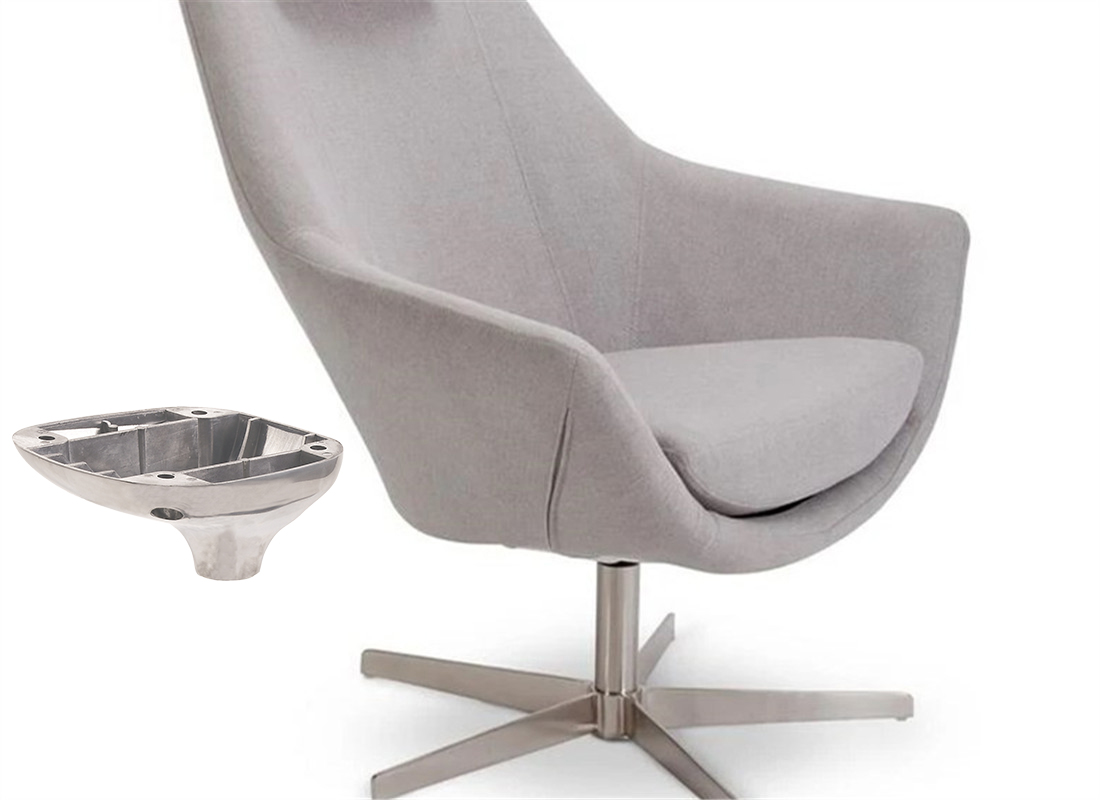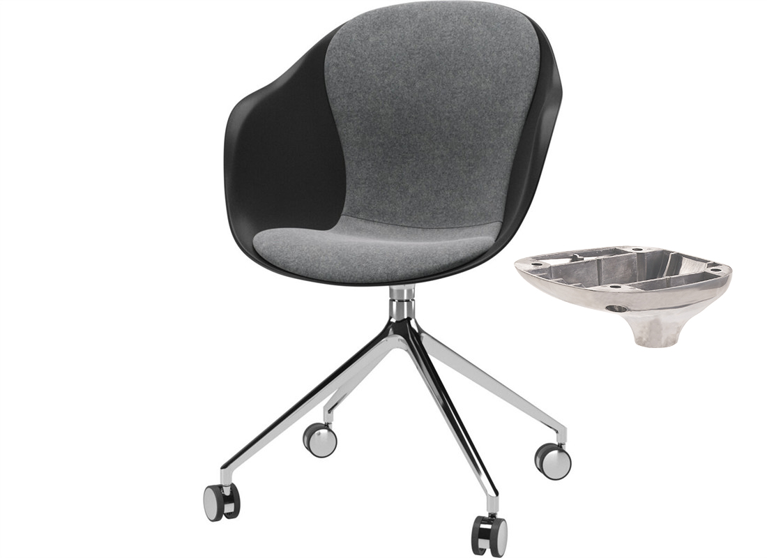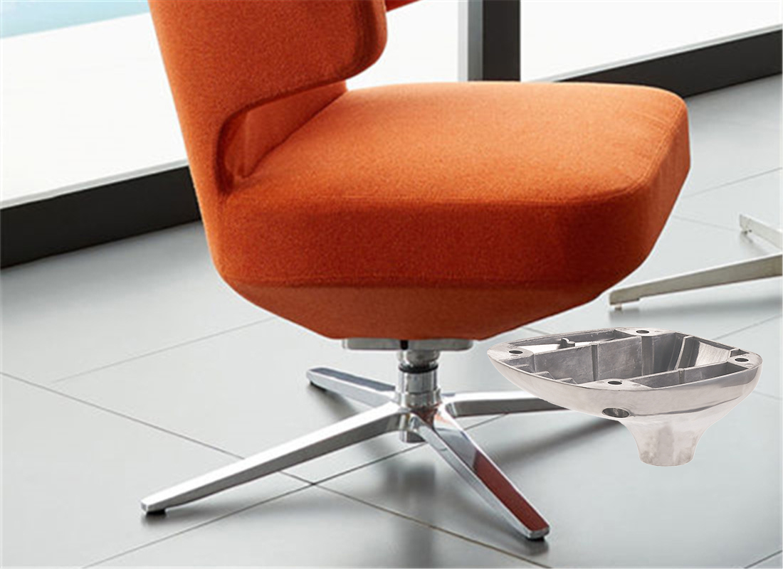A: Aluminum alloy chair bases are anti-rust, stable in structure, and the best bearing capacity. Aluminum chair base parts have chromed surface treatment, polish and powder coating surface treatment, and painted surface treatment which can be used for outdoor furniture or high-end chairs. Iron metal chair bases can be made in various shapes with designs , and cheaper than aluminum alloy chair bases, two kinds of surface treatment are Chromed and powder coated. The disadvantage is easy to rust after a long time of use or in a wet environment. Nylon base also called plastic chair base is lightweight and cheap price than aluminum and Iron metal base. The bearing capacity is not as good as aluminum alloy and metal iron chair base parts, the lifetime is shorter than iron metal and aluminum alloy base parts