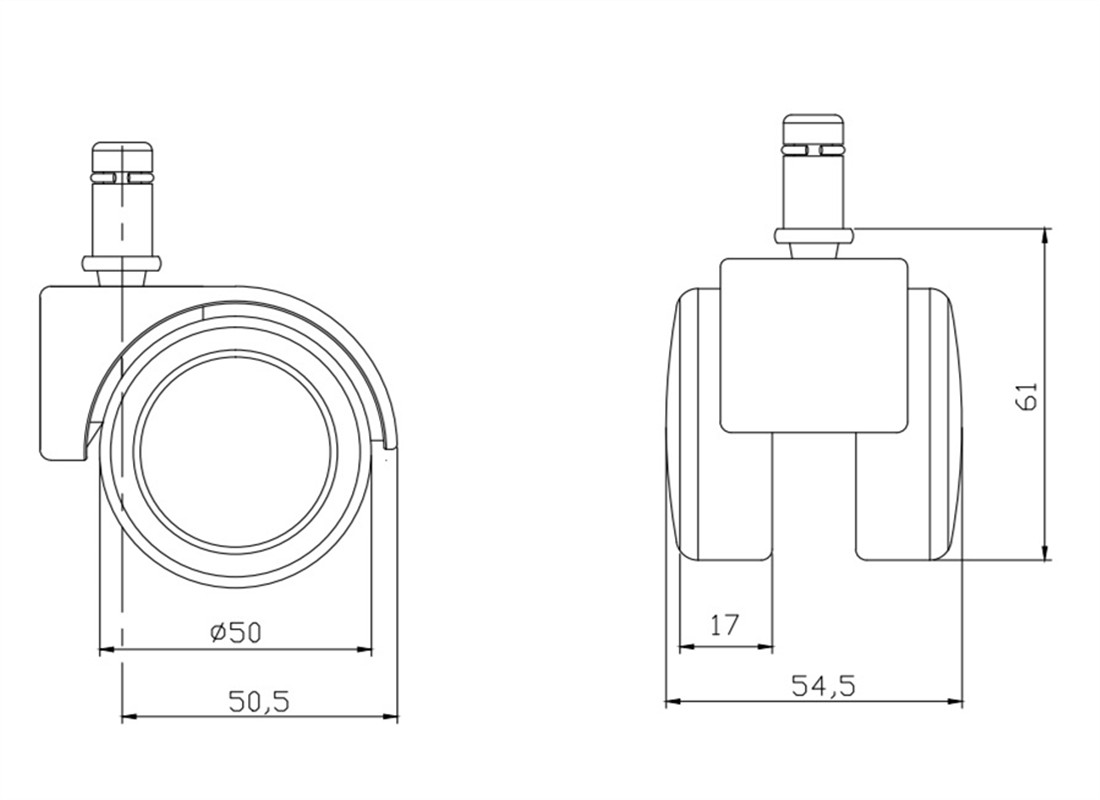 To determine your office chair wheels with brakes diameter, lay the caster down on its side and measure from the center of the kingpin to the back edge of the wheel. A straight edge lying up against the face of the wheel will make it much easier for you to determine this measurement; the point where the tape measure meets the straight edge will determine your swivel casters diameter.